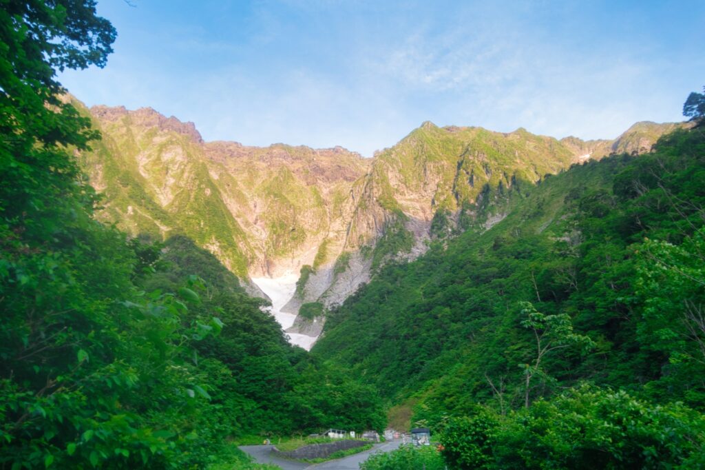 翌朝、午前三時半に目を覚ます。四時出発、薄暗い道路を進み五時には一ノ倉沢出合へ。雪渓は六月としては驚くほど少ない。アプローチ道へ。雪渓に乗れる地点で取り付き、テールリッジ基部までは雪渓歩きとなった。