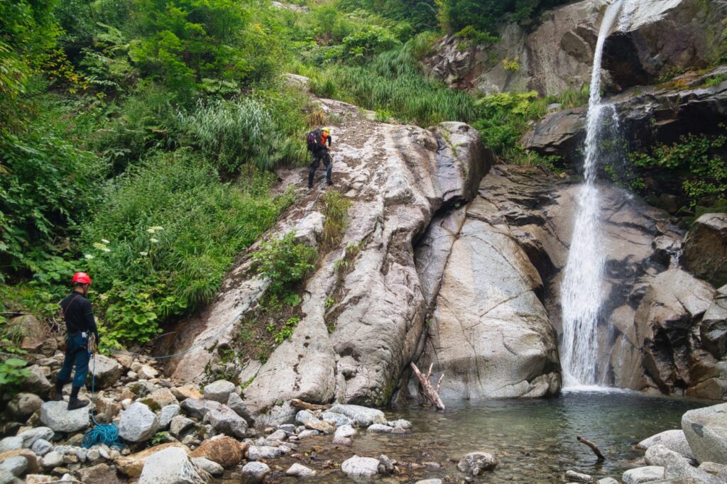 その後は小滝が連続する連瀑帯となった。二、三メートル程度の滝が次々と現れるが、いずれも技術的には難しくない。注意しながら、一つ一つ確実に越えていく。仲間との掛け声が谷に響いた。