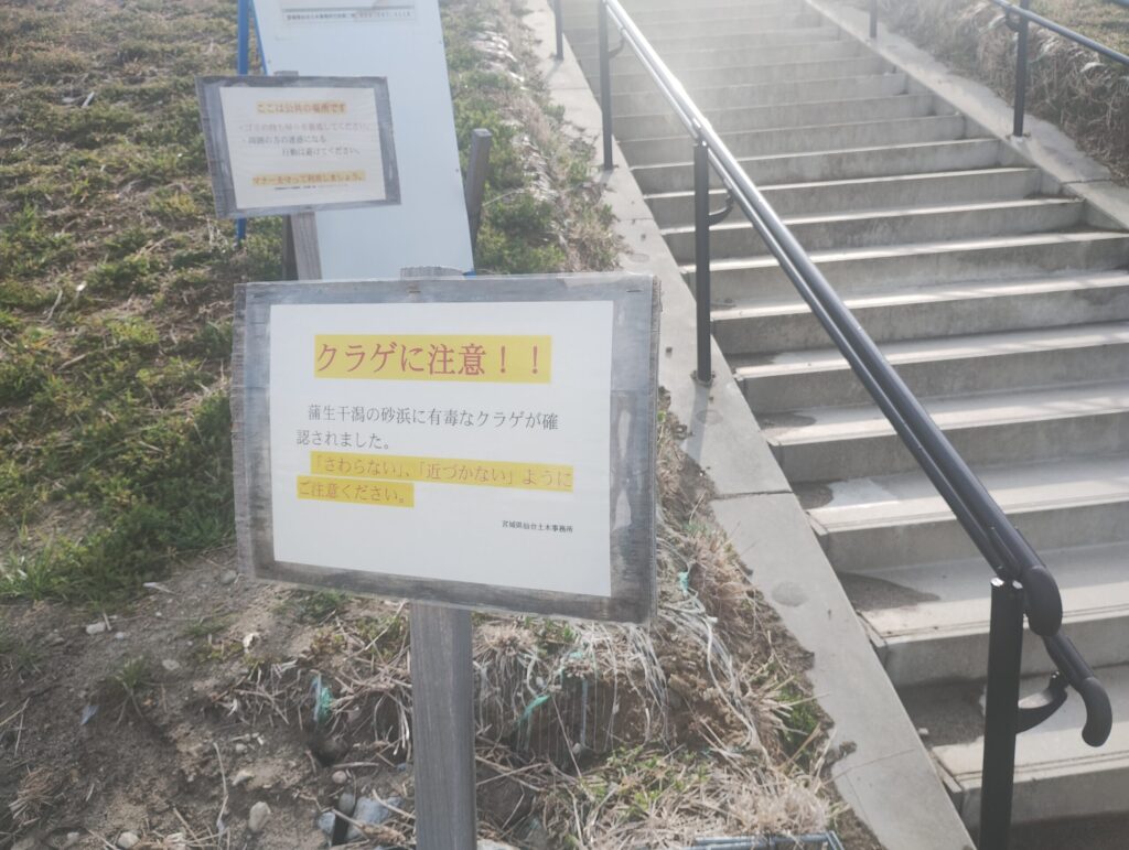 - 蒲生干潟の有毒クラゲ出没情報は、宮城県仙台土木事務所の最新情報をご確認ください(格闘技での対処は不可)