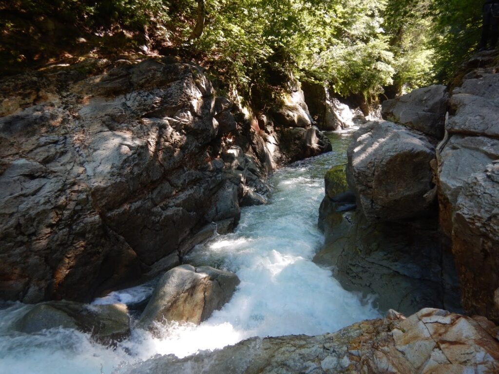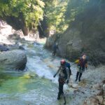明るいゴルジュだ。両岸の岩壁は高く迫るが、谷底には十分な光が差し込んでいる。水量が多いため、落ちることは許されない。過去に死亡事故も発生した箇所だという。我々は一列になり、互いの動きを確認しながら進んだ。濡れた岩を、一歩の重みを確かめながら捉えていく。滑ったら、そのまま流されるだろう。不安は確かにあった。しかし、ここで引き返すわけには行かない。