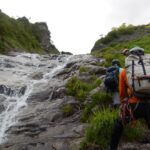- 二段30m滝: 右壁から処理(ヌメりに注意、最も手こずった箇所)