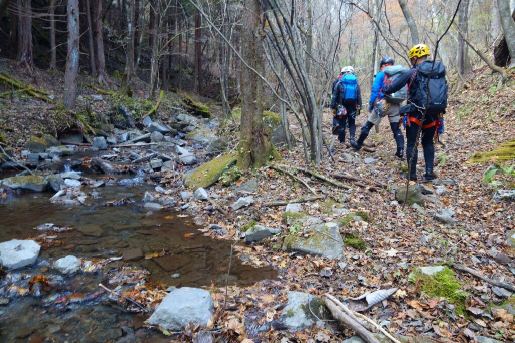 水に足を踏み入れる。十一月の渓の水は、予想以上に冷たかった。前日の谷急沢は思いのほか温かったが、こちらは違う。冷気が足元から這い上がってくる。この時期、濡れることへの覚悟が必要だと、身体が教えてくれた。